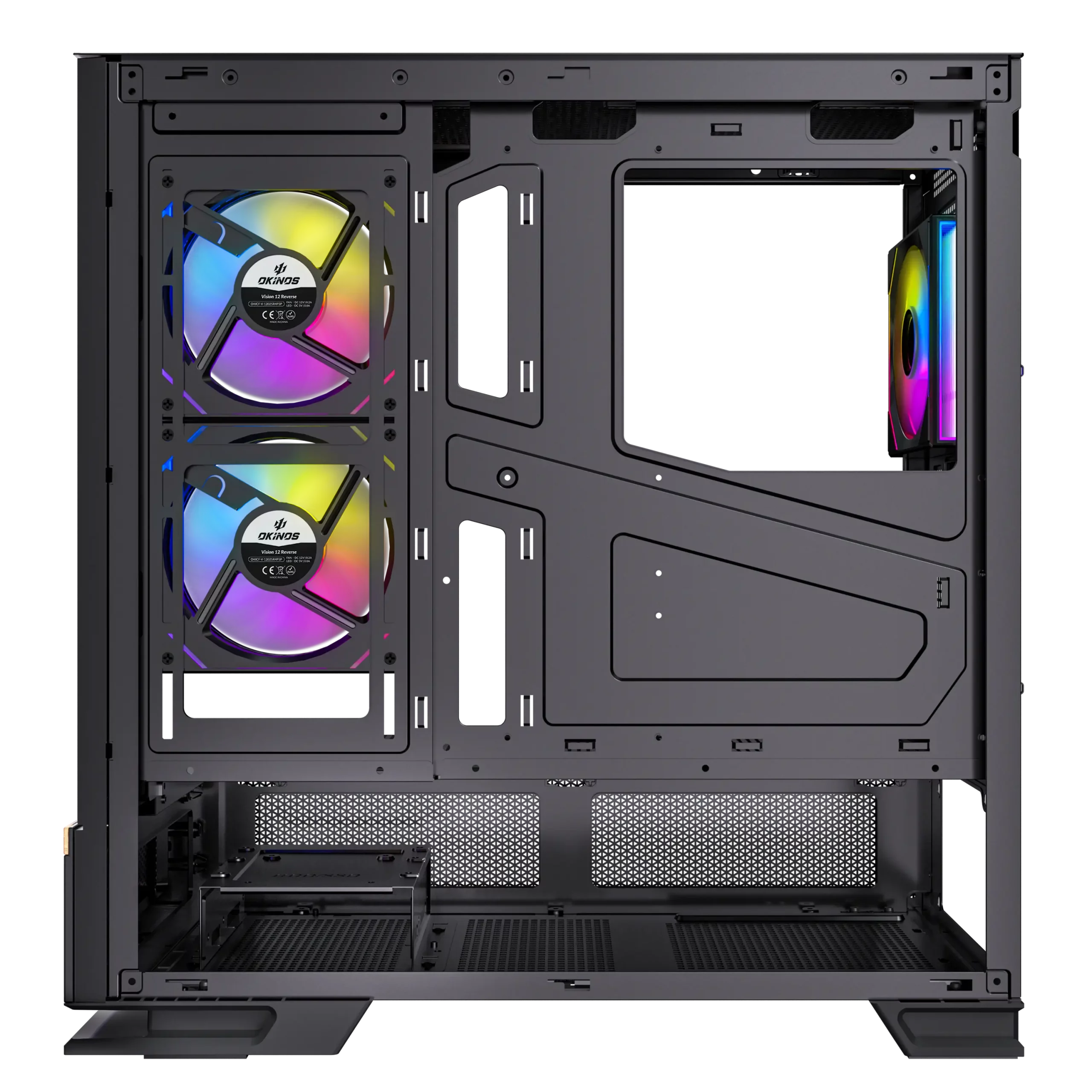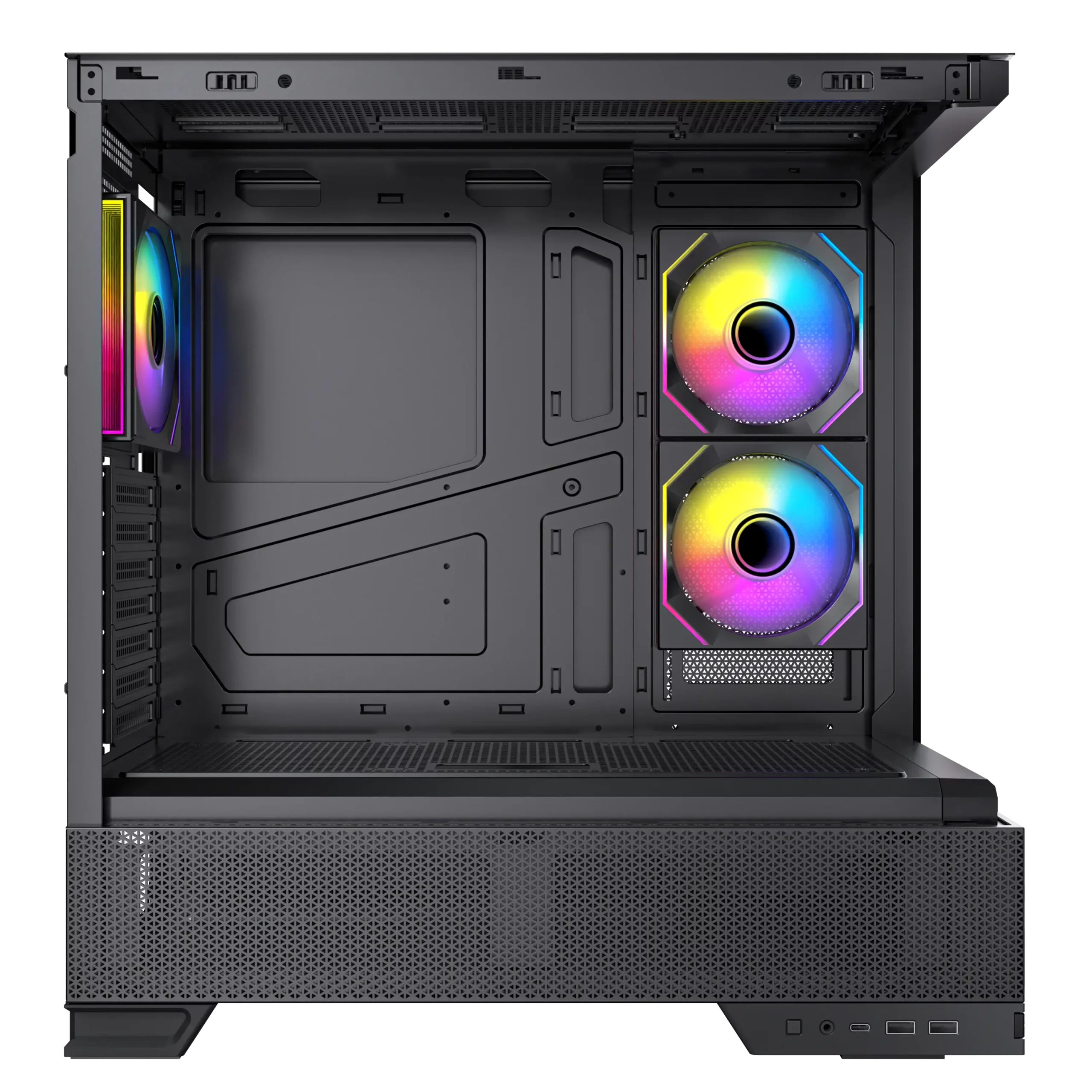Pre-Installed 2x 120mm PWM ARGB Reverse fans at the side and 1x 120mm PWM ARGB fan at the rear, the case achieves a meticulously designed airflow path to ensure efficient cooling.