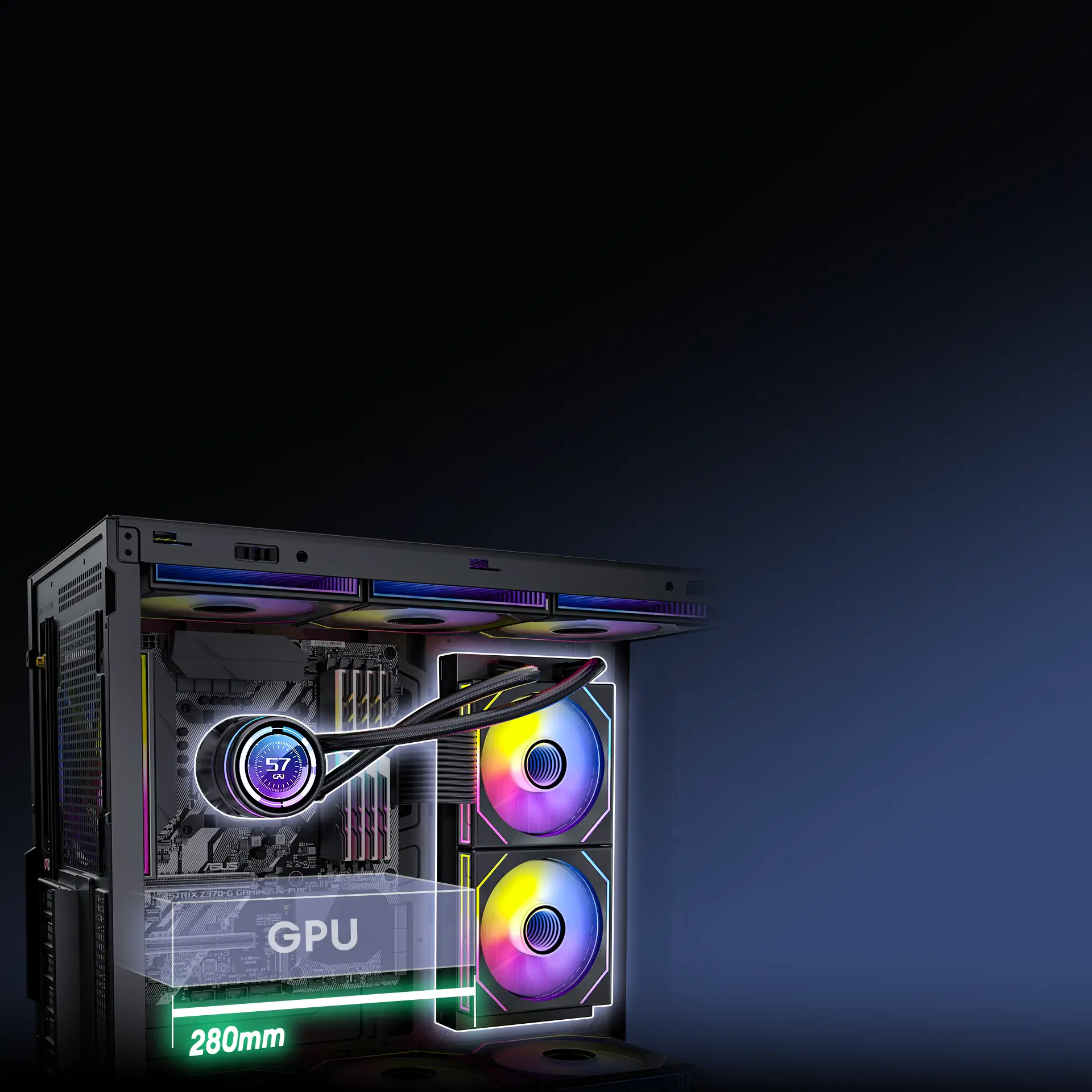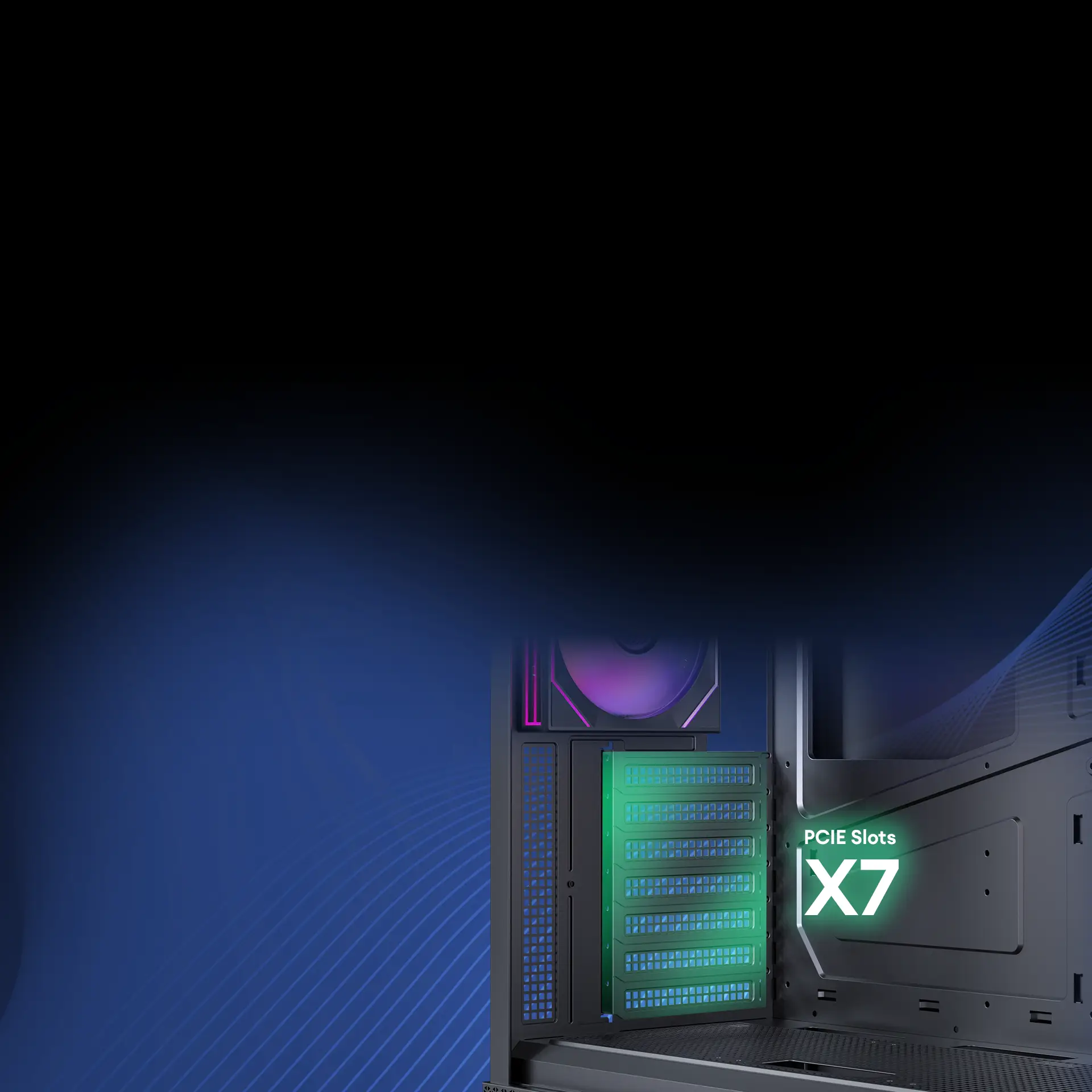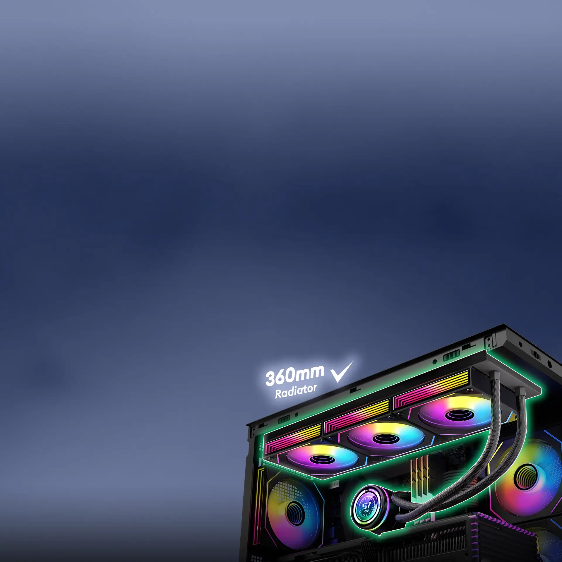 Pre-Installed 2x 120mm PWM ARGB Reverse fans at the side and 1x 120mm PWM ARGB fan at the rear, the case achieves a meticulously designed airflow path to ensure efficient cooling.