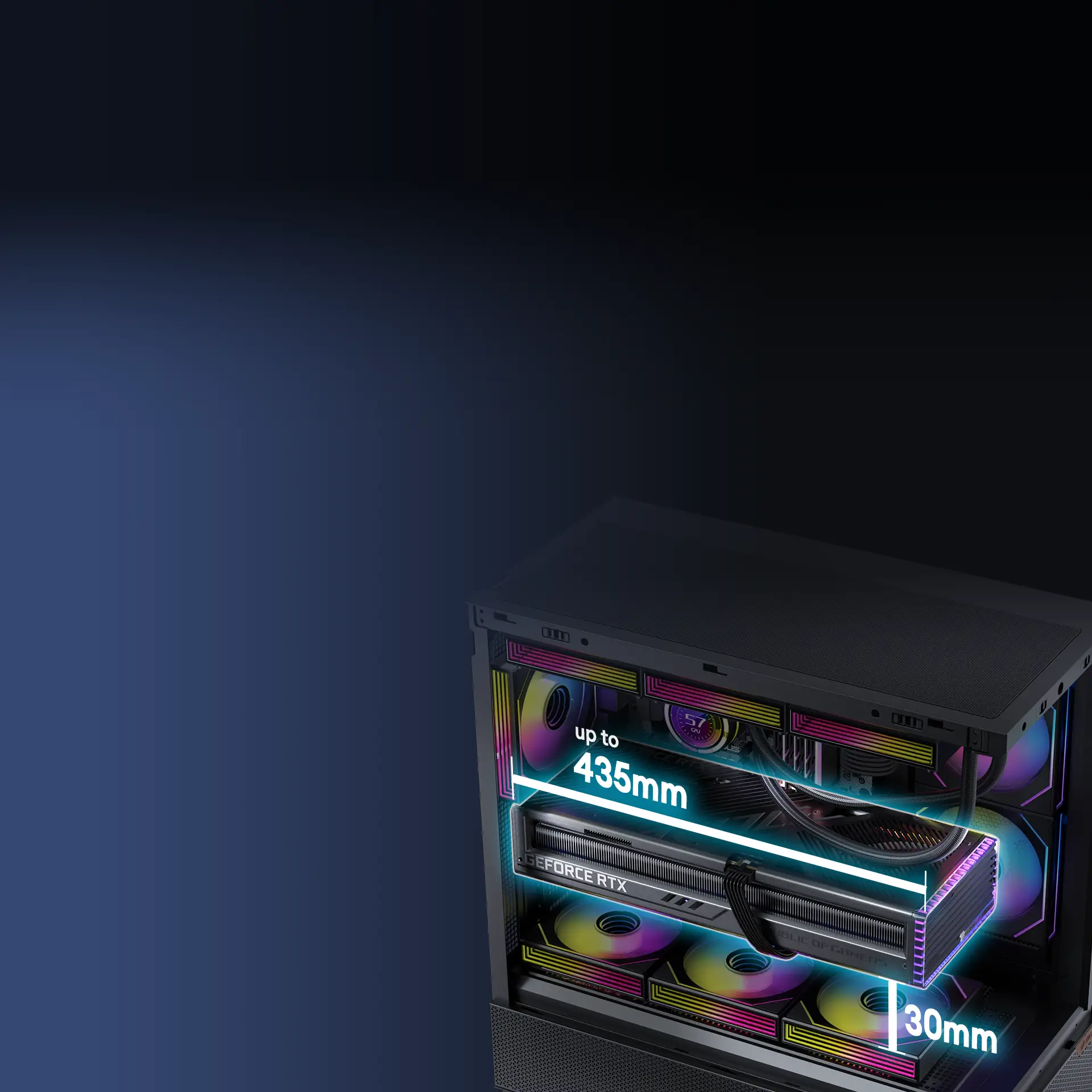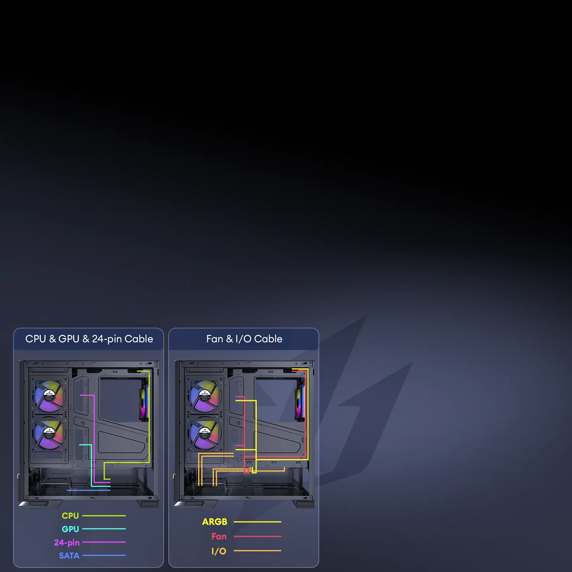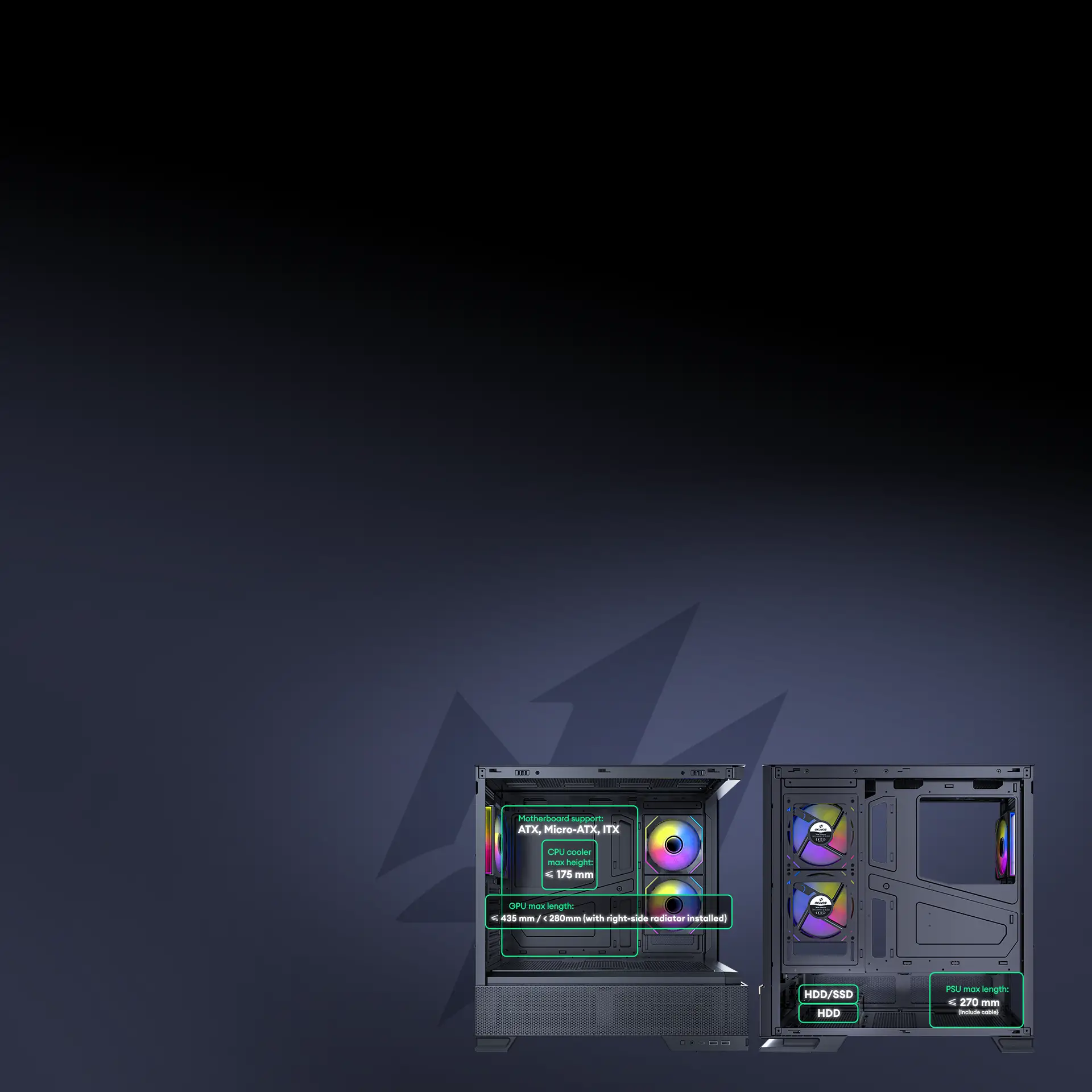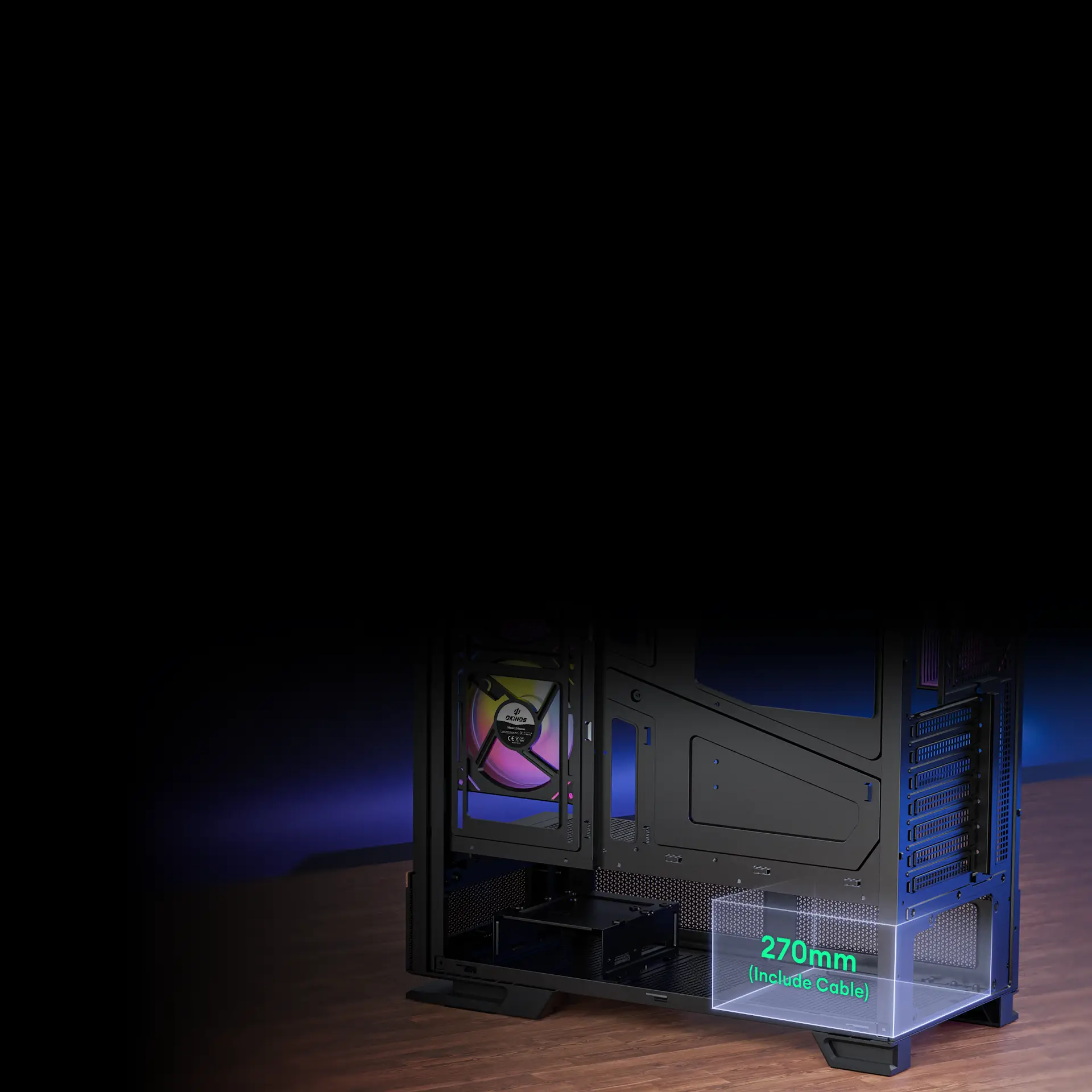 Pre-Installed 2x 120mm PWM ARGB Reverse fans at the side and 1x 120mm PWM ARGB fan at the rear, the case achieves a meticulously designed airflow path to ensure efficient cooling.