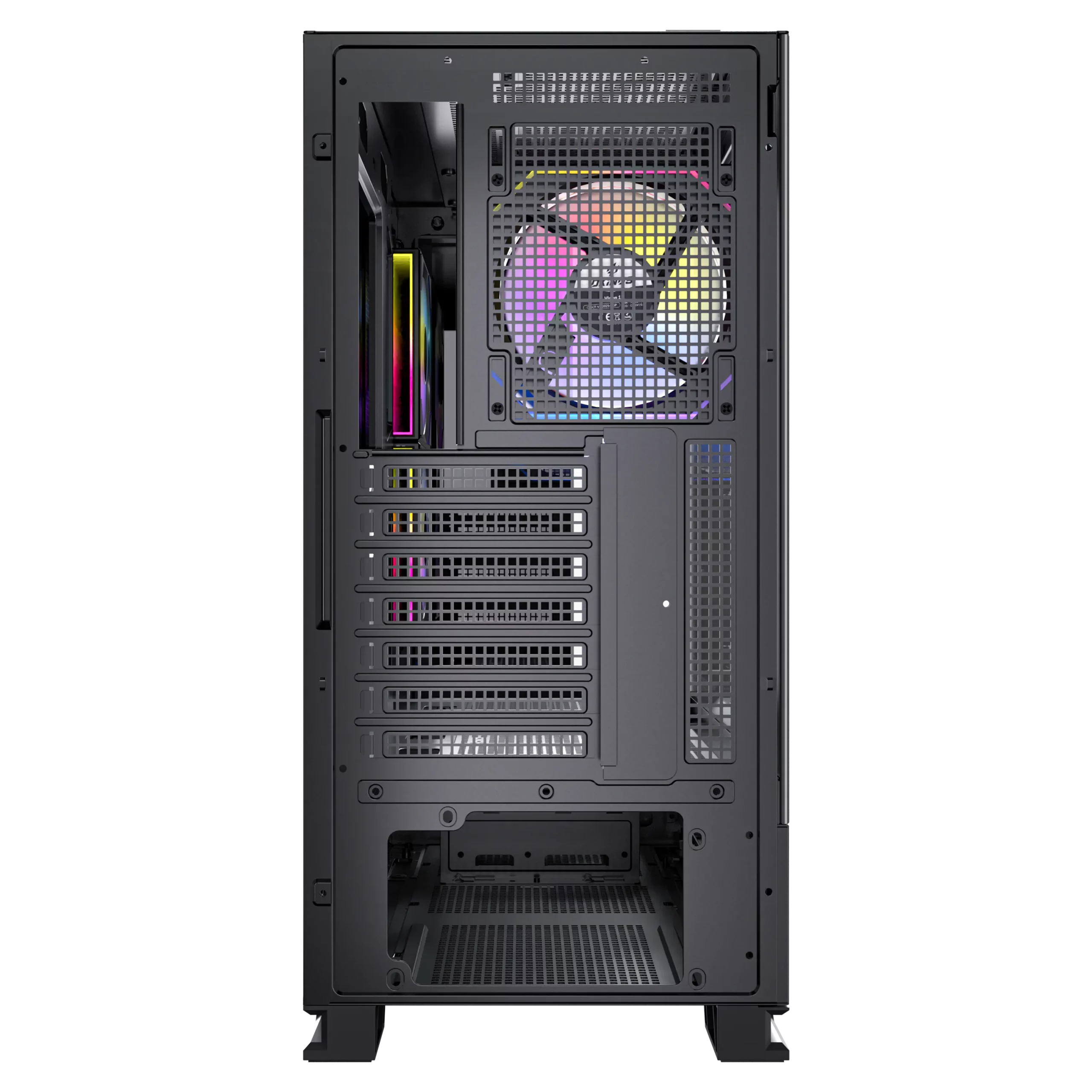 Features 7 reusable PCIe slot covers. Provides ample width to support wider RTX50 series GPU.