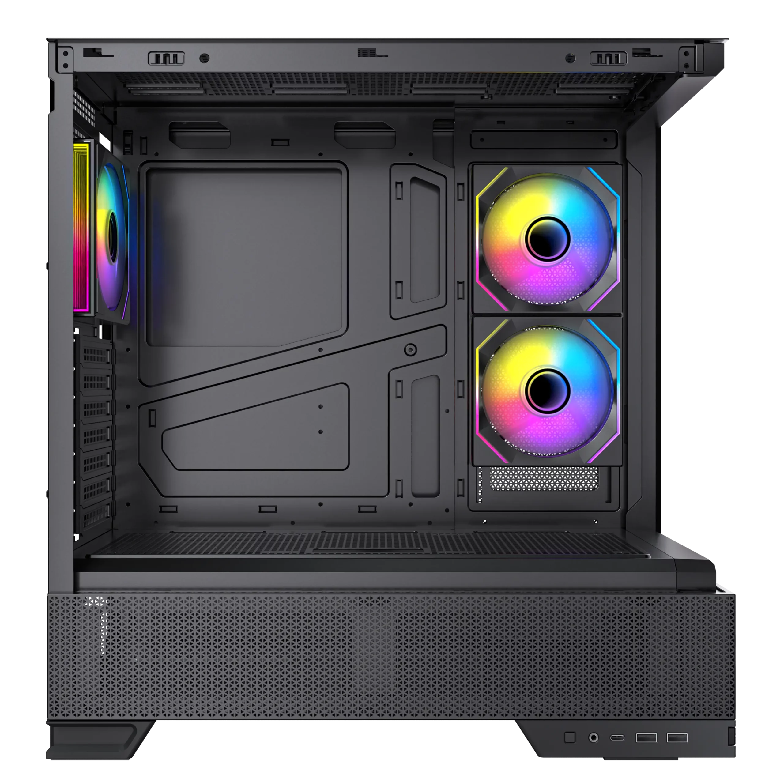 - Full-size magnetic filters are included on the top (with a convenient handle), right side, and bottom, ensuring effortless cleaning and comprehensive dust protection.