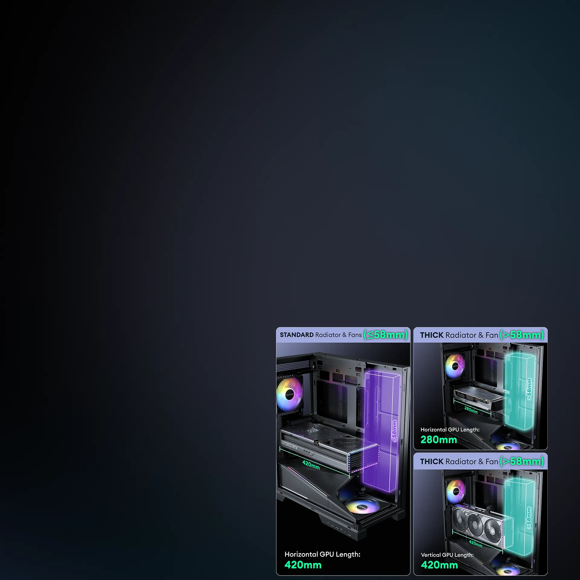 Supports the up-to-date 40 Series GPUs and high-end PC components.