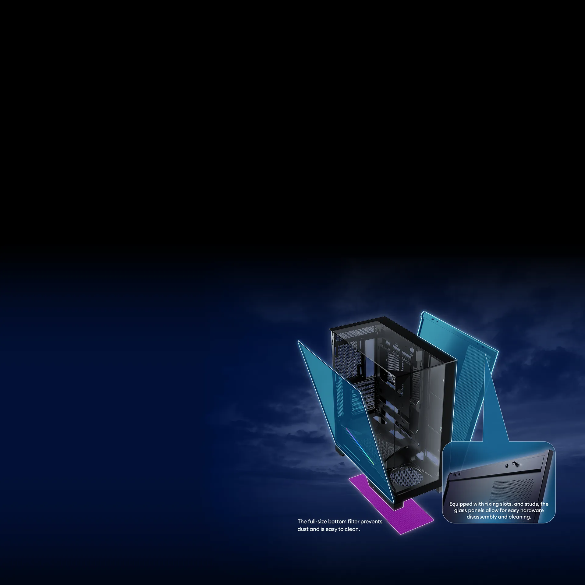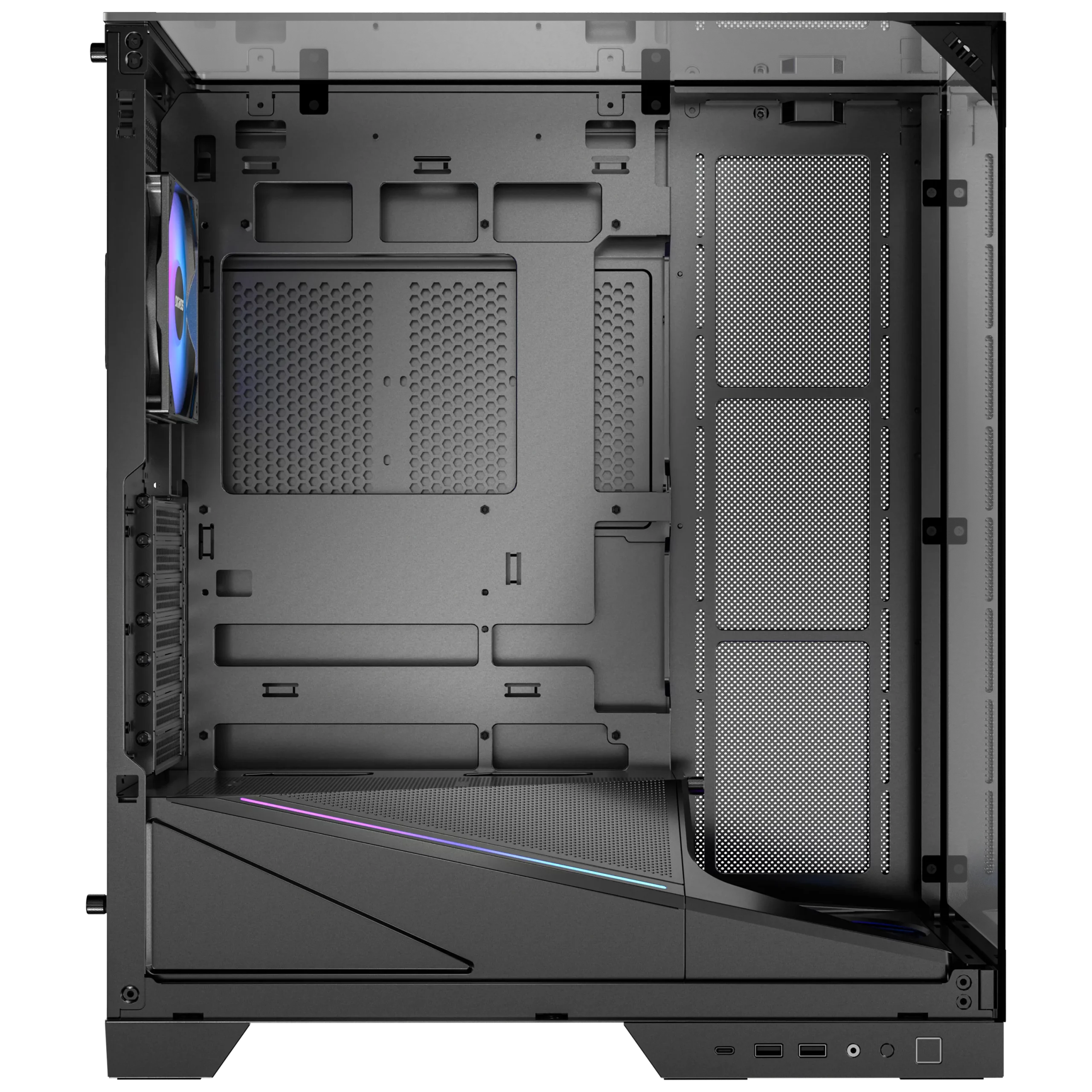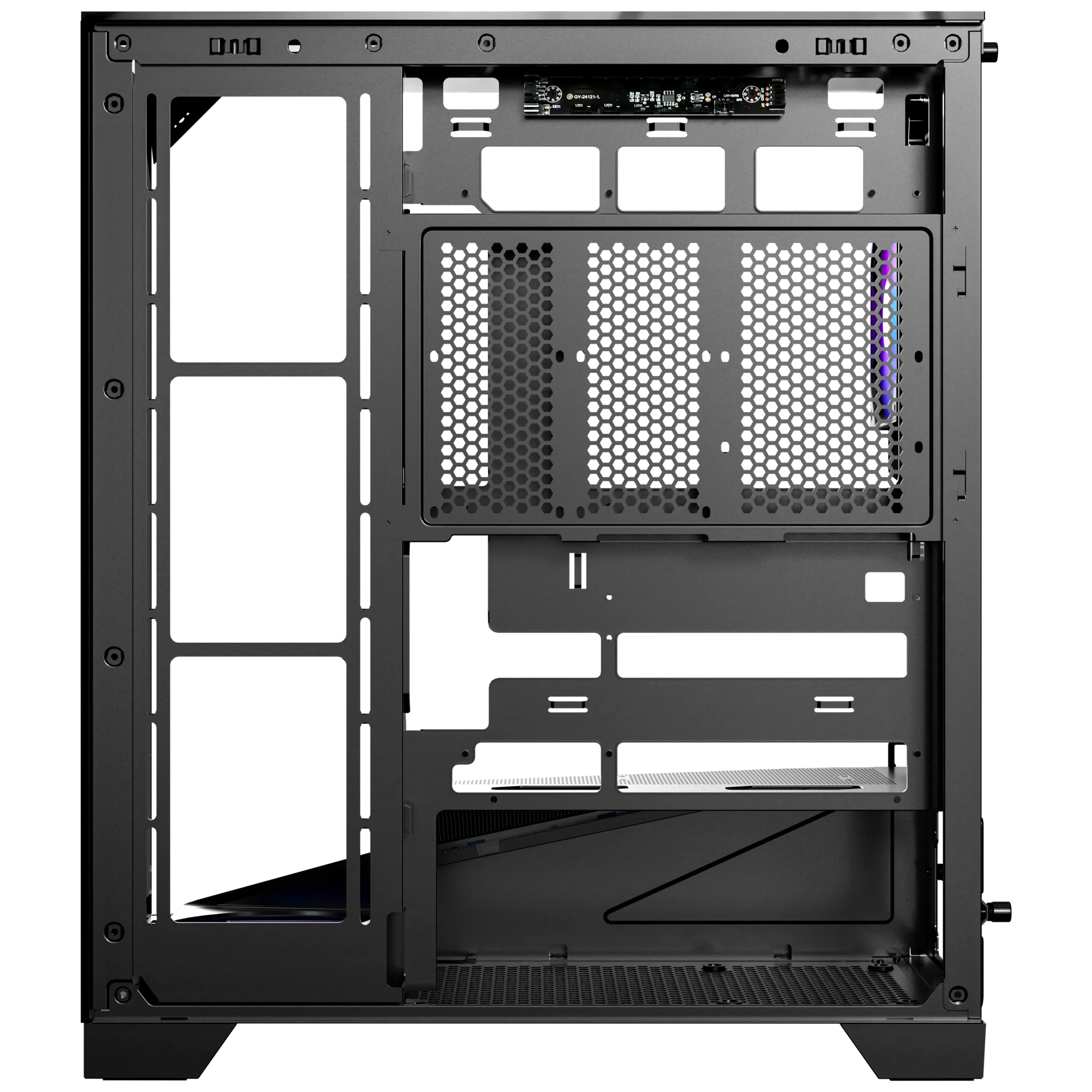The inclined power supply shroud with ARGB lighting adds elegance and enhances airflow.