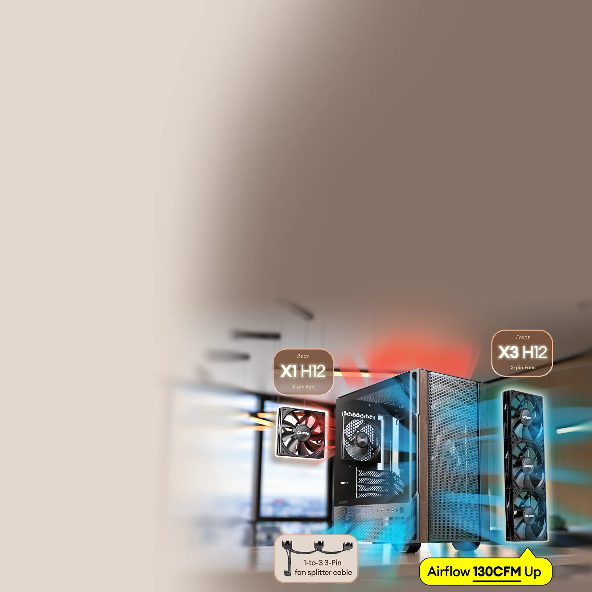 Enhanced Airflow with Pre-installed 4 x 120mm H12 3-Pin Fans